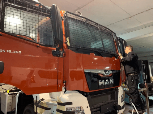 Protection solutions for minibuses, buses, trucks, and logistics vehicles operating in hostile environments.